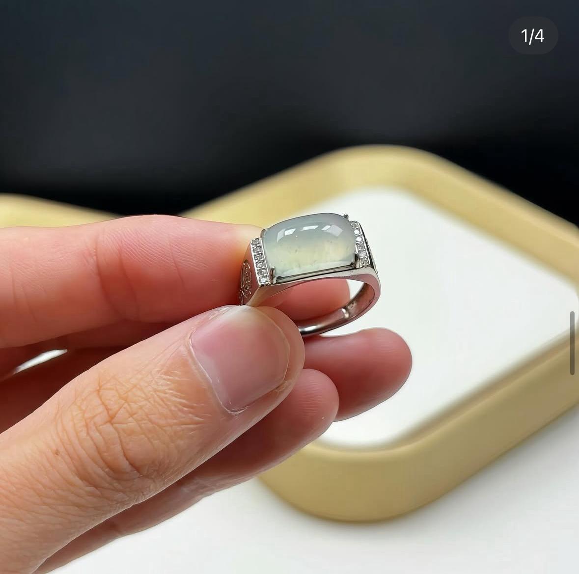 冰種飄綠花翡翠馬鞍純銀戒指(活動圈口) 編號: A2268 💰價錢 HK$ 1000
