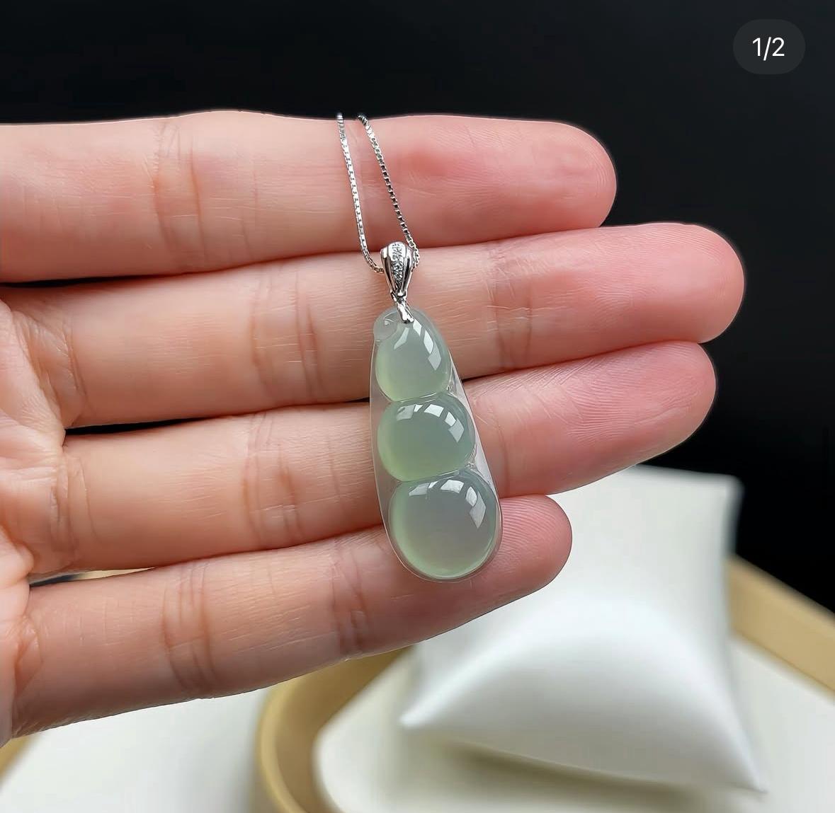18K 白金冰晴翡翠福豆 編號: A2168 Size : 36mm x 12mm x 5mm 💰價錢HK$ 4500